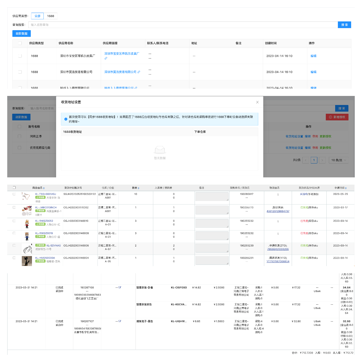 通过对商品供应商的管理,自动同步订单商品采购、加工、运输全流程的各个节点。